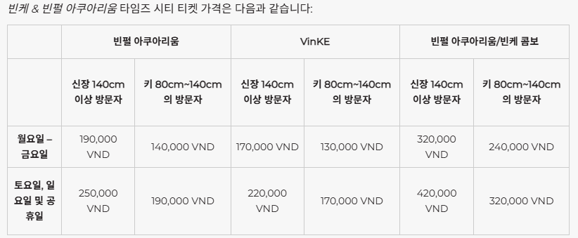 - 입장권은 빈케 단독, 빈펄 아쿠아리움과의 콤보 등으로 구매할 수 있어 일정에 맞게 선택 가능합니다.